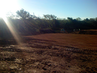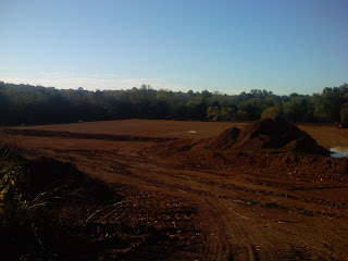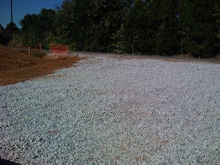 When they finally got to moving ground they really got on it! In the few days they have cut the road and it's neat. They have pretty much completed the retention pond AND are you ready for this??? The pad is done! That means we can put down the foundation (slab, pad) and then put up the building. That's the exciting news. It is looking great out there.