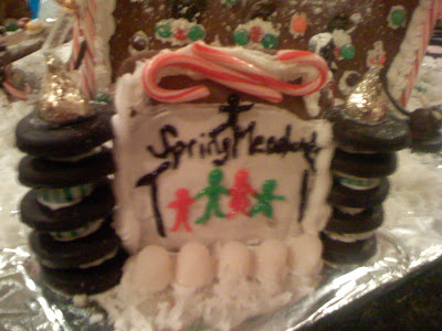 One of our ladies made this neat Ginger bread "church" house. It is Spring Meadows. Notice the one close up below.